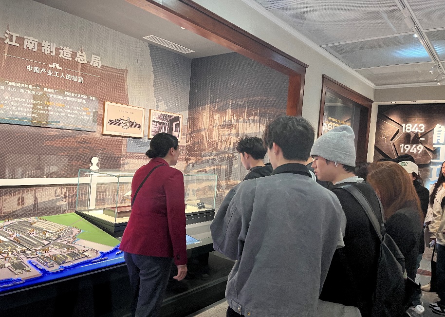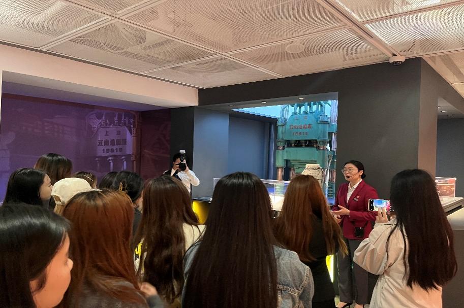 参观学习过程中,学生骨干们认真聆听讲解员和劳模讲解讲述了上海整个制造业的产业链发展的历史过程。展现了中国近代民族工业史,上海从一个滨海县城发展成为中国重要的工业城市和沿海港口,这背后都是无数民族企业家及手工匠人的坚守和付出。他们以精雕细琢的匠心成就了远东第一大都市的盛名。其中,第一部分参观学习了外滩剪影,产业工人的摇篮——江南制造总局,杨济川工作场景复原。