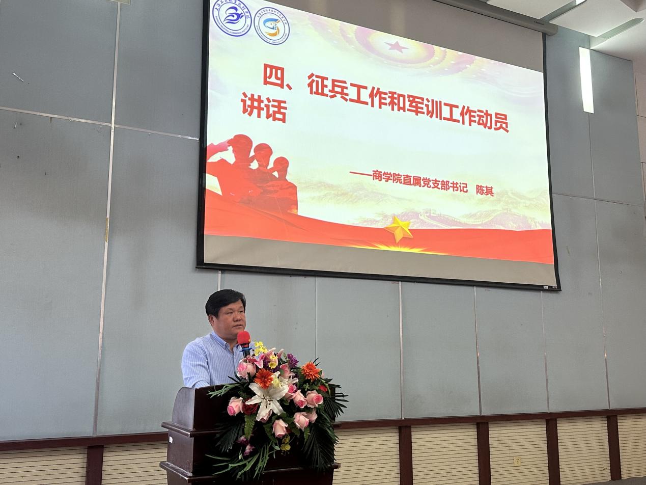 会议第四项,必赢电子游戏网站直属党支部书记陈其作征兵工作暨2023级学生军训工作动员讲话。首先,陈其在征兵工作动员讲话中讲到,学院高度重视大学生征兵工作,积极倡导我院广大青年学生应征入伍。他希望必赢电子游戏网站广大青年学生能积极投身到强国、强军、兴军的伟大实践当中,担当时代重任,为祖国繁荣稳定作出应有贡献。随后,陈其从当代大学生成长发展的角度进行分析,为与会同学们分析讲述了入伍当兵的多重优势。他鼓励同学们肩负起新时代青年大学生的责任与担当,怀爱国之心,存报国之志,把握机遇,勇于到部队大熔炉淬炼自我,积极投身国防建设。