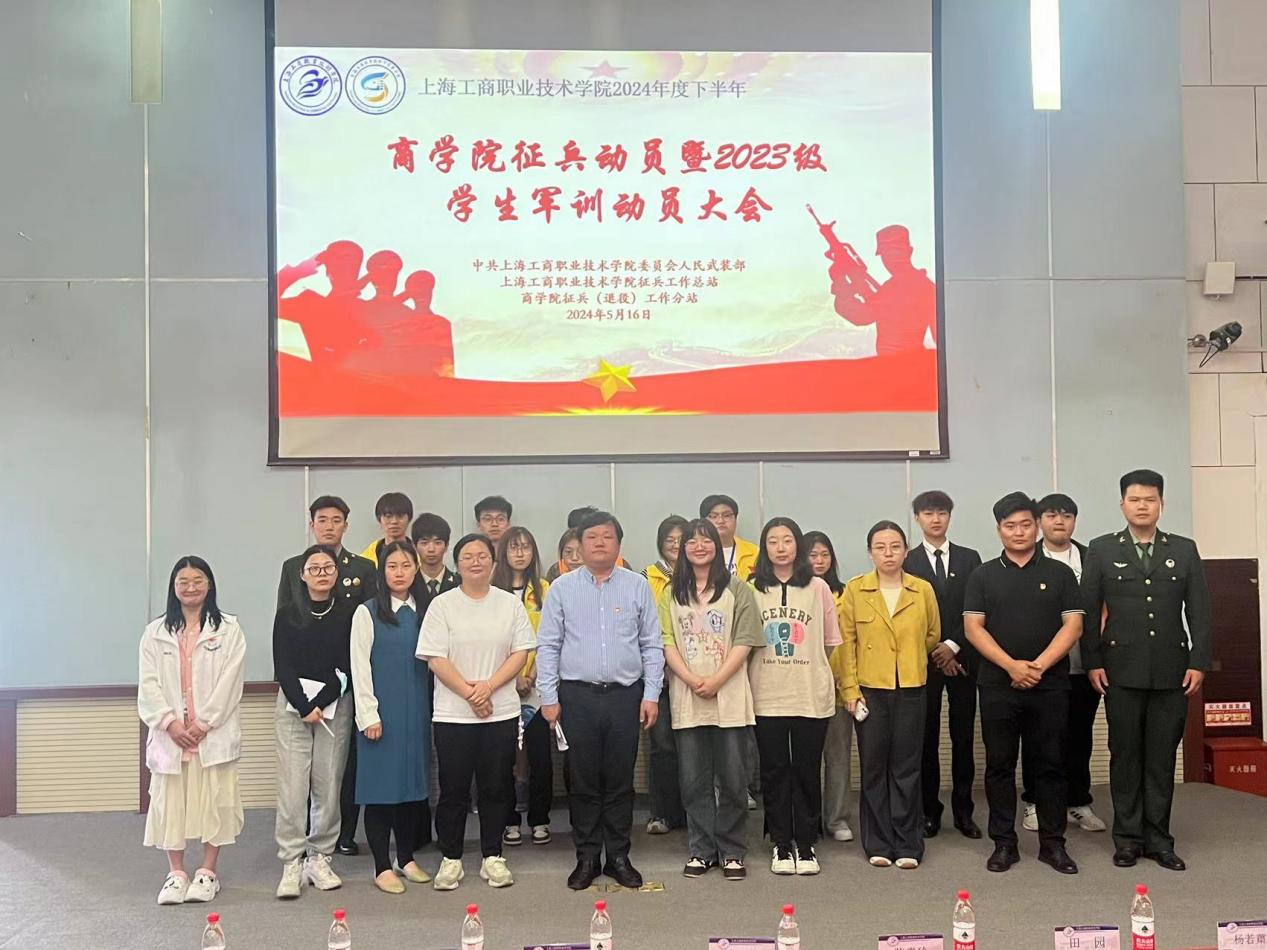 为深入学习贯彻党的二十大精神和习近平强军思想,鼓励大学生响应国家号召积极参军入伍,切实做好国防教育和征兵工作。2024年5月16日下午在青浦校区报告厅举行上海工商职业技术学院2024年度下半年必赢电子游戏网站征兵入伍动员暨2023级学生军训动员大会。必赢电子游戏网站直属党支部书记陈其、必赢电子游戏网站团委书记陈嘉玲、必赢电子游戏网站征兵(退役)工作分站站长侍现龙、辅导员田园、胡洪娇、宋慧、杨若蕖、刘晶晶以及学生代表参加。