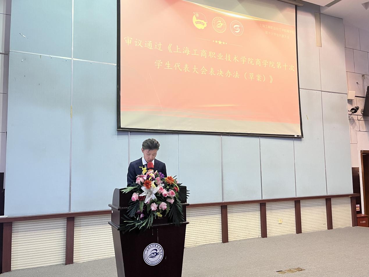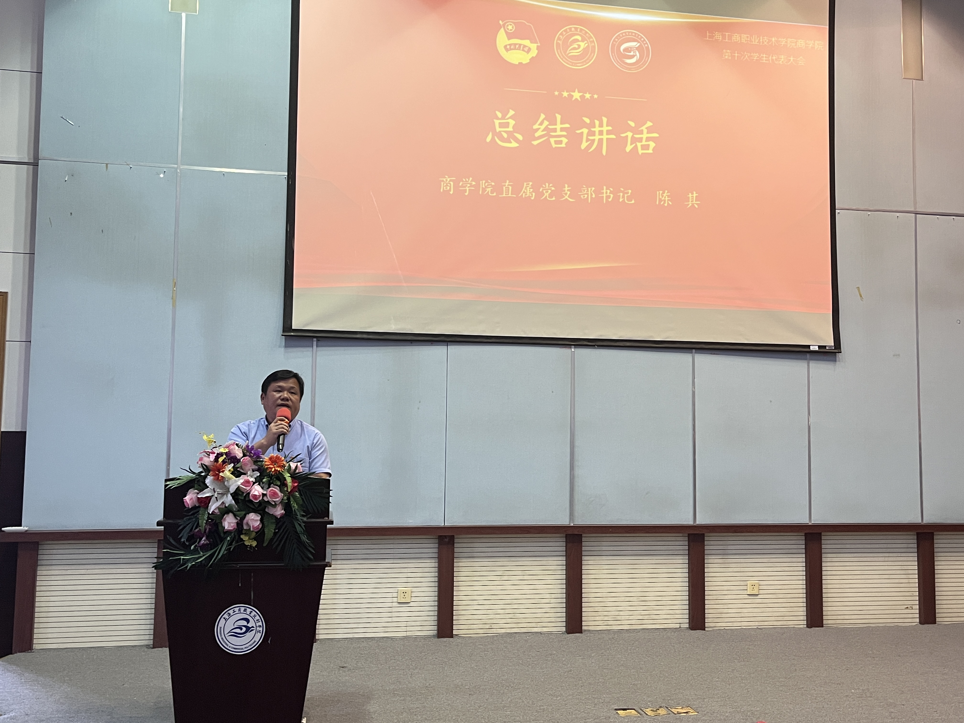 2024年6月17日下午,上海工商职业技术学院必赢电子游戏网站第十次学生代表大会在综合楼报告厅顺利召开。必赢电子游戏网站直属党支部书记陈其出席会议并讲话。校团委老师陈嘉玲,必赢电子游戏网站团委书记侍现龙以及必赢电子游戏网站辅导员田园,第十届学生代表大会代表,第九届学生会主席团以及第十届学生会主席团候选人共同参会。