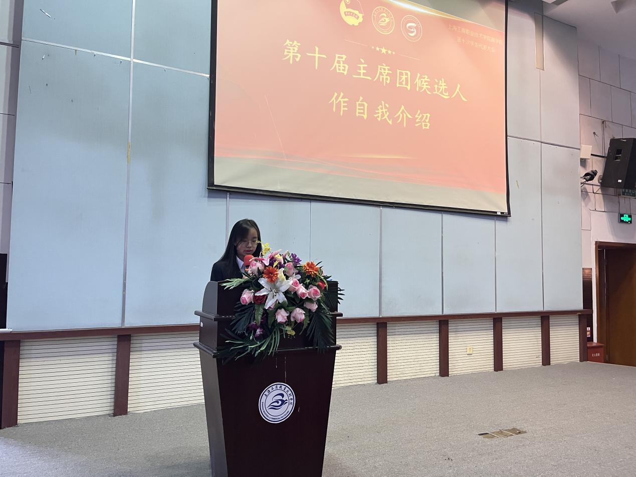 随后,第十届学生会主席团候选人依次进行自我介绍,并对主席团的工作职责和学院学生会未来一年的工作提出设想与展望。最后,通过现场58位学生代表投票选举产生上海工商职业技术学院必赢电子游戏网站第十届学生会主席团,王东明和钟昕两位同学高票当选。