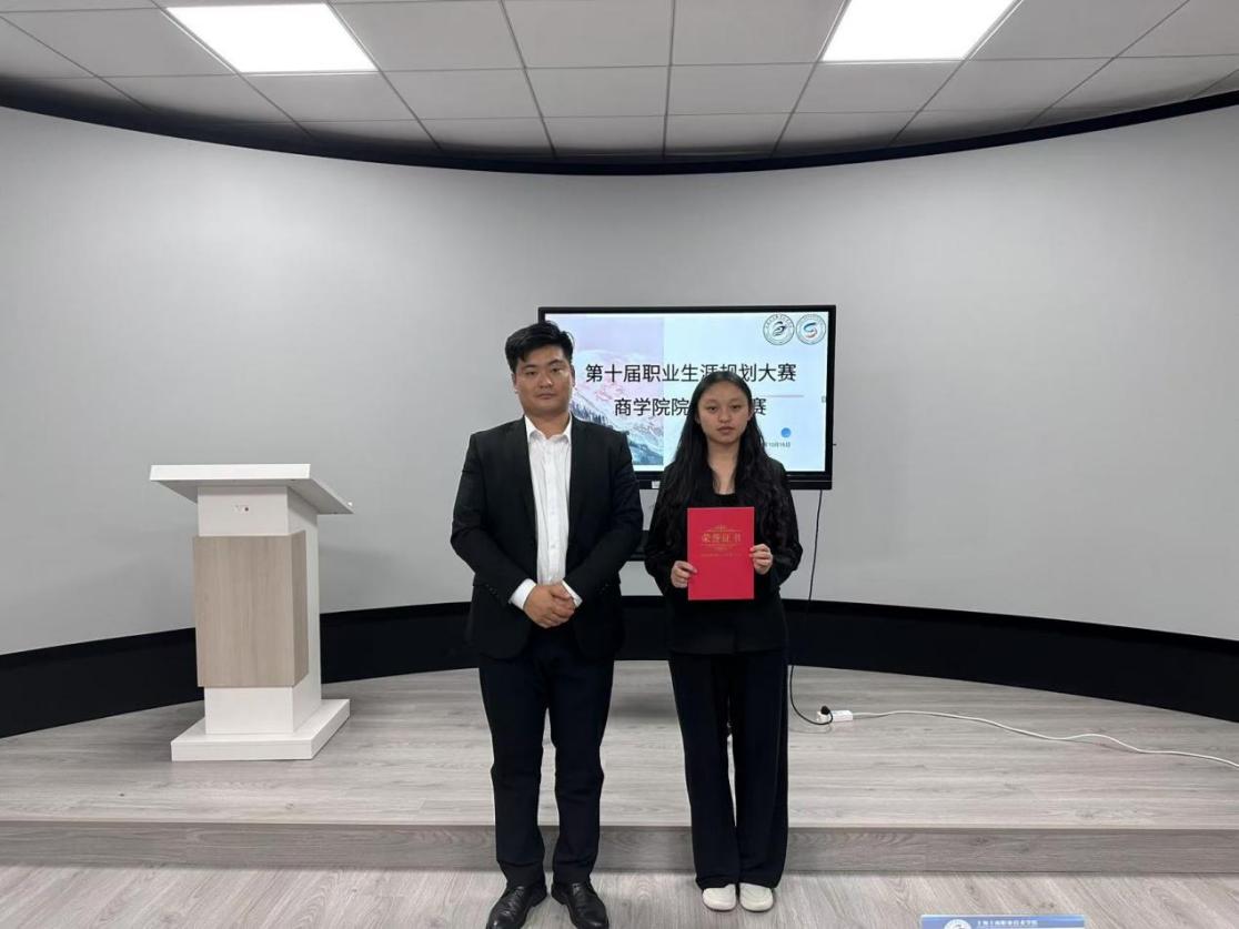 评委老师认真倾听每位选手的未来职业规划,并逐个进行点评,针对每位选手在职业规划报告中的不足之处提供参考意见。经过激烈角逐,顾乐韵、王文君两位同学脱颖而出,分别获得就业赛道一等奖和成长赛道一等奖。
