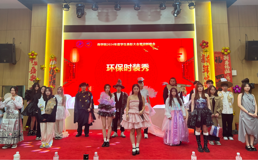 大会在众人的翘首期盼中拉开帷幕。大会伊始,便迎来了一场别开生面的视觉盛宴——由学生们匠心独运、亲手设计的环保时装逐一精彩亮相。那些用废弃材料巧妙重塑而成的服饰,或飘逸灵动、或个性前卫、或典雅精致,风格各异却无一不让人惊叹叫绝。模特们的自信展示与独特设计相互辉映,瞬间牢牢吸引了全场的目光,点燃了现场的热烈氛围,引得台下观众掌声雷动,欢呼不断。