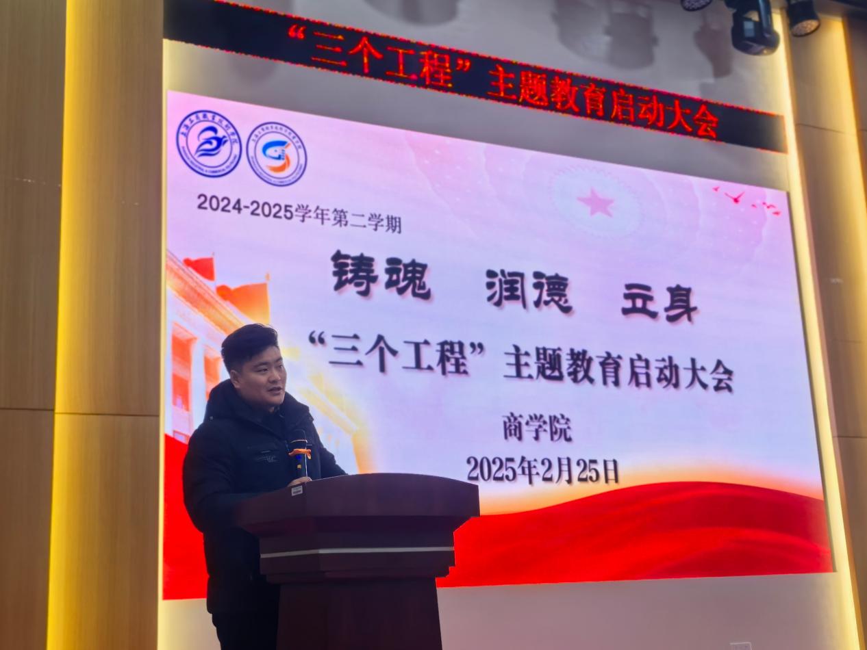 为深入学习贯彻习近平新时代中国特色社会主义思想和全国教育大会精神,全面贯彻党的教育方针,不断推进学生思想政治教育和校园精神文明建设,落实立德树人根本任务。2025年2月25日中午,必赢电子游戏网站在青浦校区综合楼报告厅组织召开2024-2025学年第二学期“铸魂、润德、立身”三个工程主题教育启动大会。必赢电子游戏网站直属党支部书记陈其出席会议。全体辅导员、全院学生干部参加会议。会议由党支部副书记侍现龙主持。