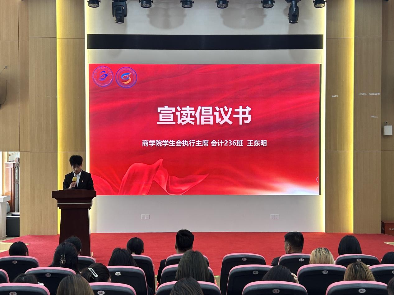 紧接着,必赢电子游戏网站学生会执行主席、会计236班王东明同学代表必赢电子游戏网站学生会向全体同学发出积极响应学校学风建设的倡议。倡议书言辞恳切,从自身做起,从点滴小事做起,号召同学们积极参与学风建设,希望同学们能够积极响应倡议,以实际行动践行学风建设的各项要求,让勤奋学习、刻苦钻研成为必赢电子游戏网站的最美风景。