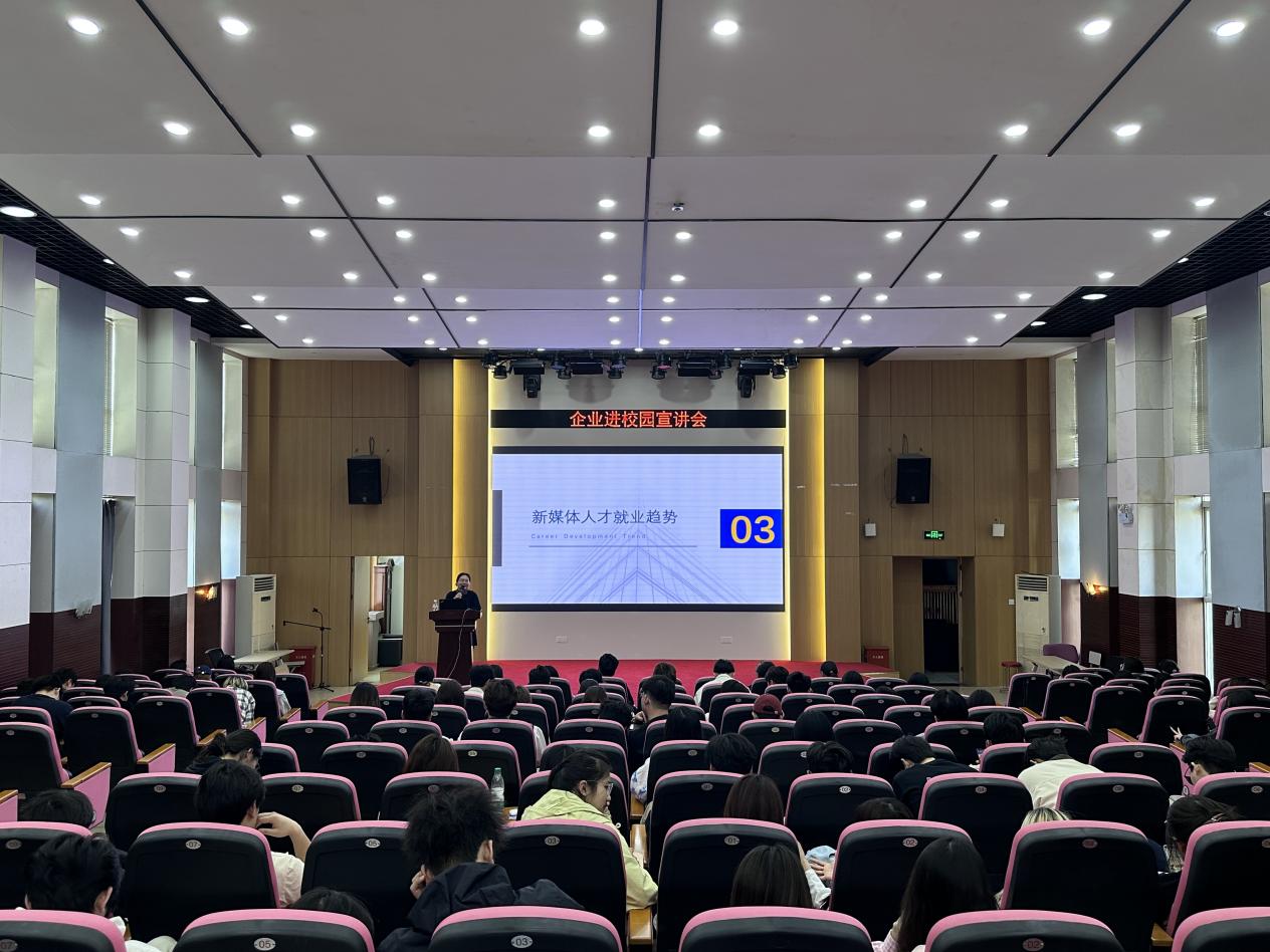 “未来的新媒体战场,需要既懂技术又懂市场的复合型人才!”宣讲会上,杨紫晨以生动的案例和前瞻的数据,勾勒出新媒体行业的蓬勃图景。从短视频营销到跨境直播,从AI选品到数据驱动的内容运营,她深入剖析行业对人才的核心需求,现场金句频出:“流量是船,内容是帆,创新思维才是破浪的桨!”台下学生时而凝神记录,时而热烈讨论,互动环节更是争先提问:“企业更看重实习经历还是专业技能?”“跨境直播的赛道如何差异化竞争?”杨紫晨一一解答,妙语连珠的回应引得掌声不断。