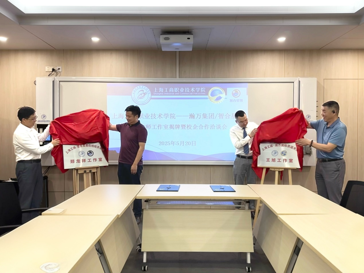 在全体嘉宾的共同见证下,瀚万-上海工商国际货运大师工作室、上海工商-在线新经济大师郑龙祥工作室正式揭牌。两大工作室将依托企业技术专家与校内师资团队,打造集“课程开发、技能培训、项目孵化”于一体的实践平台,为学生提供“零距离”接触行业前沿的机会。会议设洽谈环节,校企双方围绕“订单班共建”“实习就业基地建设”等议题展开深度对话,推动合作意向落地。