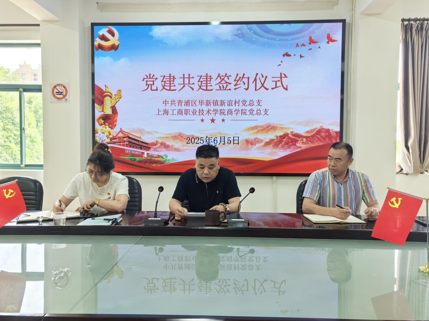 2025年6月5日,必赢电子游戏网站党总支与华新镇新谊村党总支党建结对共建签约仪式在新谊村会议室隆重举行。新谊村党总支书记任卫华、必赢电子游戏网站党总支书记陈其出席签约仪式并分别代表双方单位致辞。新谊村党总支副书记黄爱民、必赢电子游戏网站党总支副书记侍现龙以及两家单位部分党总支委员共同参加签约仪式。此次签约仪式标志着双方在党建领域开启了深度合作与交流的新篇章。