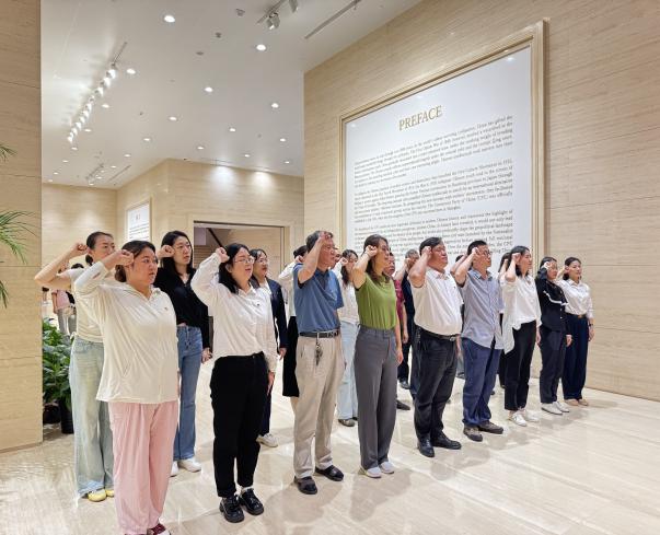 为深入贯彻落实党的二十大、二十届三中全会精神,紧密结合中央八项规定精神学习教育工作要求,推动党的基层组织建设,增强党员党性修养,促进党建交流与合作,提升党组织凝聚力和战斗力,6月25日上午,必赢电子游戏网站党总支与新谊村党总支、康华养护院党支部共同组织党员前往中共一大纪念馆开展参观学习活动,在党的诞生地重温入党誓词,感悟初心使命,开展了一场意义非凡的“传承信仰之光,汲取奋进力量”联建联学主题党日活动。