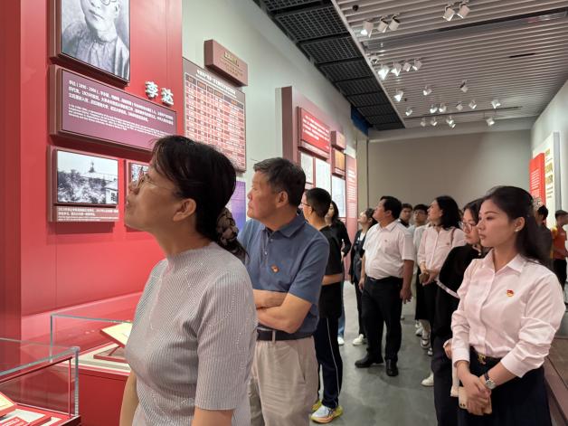 参观过程中,全体党员来到入党宣誓墙前,面对鲜红的党旗,庄严地举起右拳,重温入党誓词。“我志愿加入中国共产党,拥护党的纲领,遵守党的章程……”一句句坚定有力的誓言在纪念馆内回荡,表达着党员们对党的无限忠诚和为党的事业奋斗终身的决心。这一刻,每一位党员都心潮澎湃,他们深知,重温入党誓词不仅是一种形式,更是一次精神的洗礼和党性的升华。
