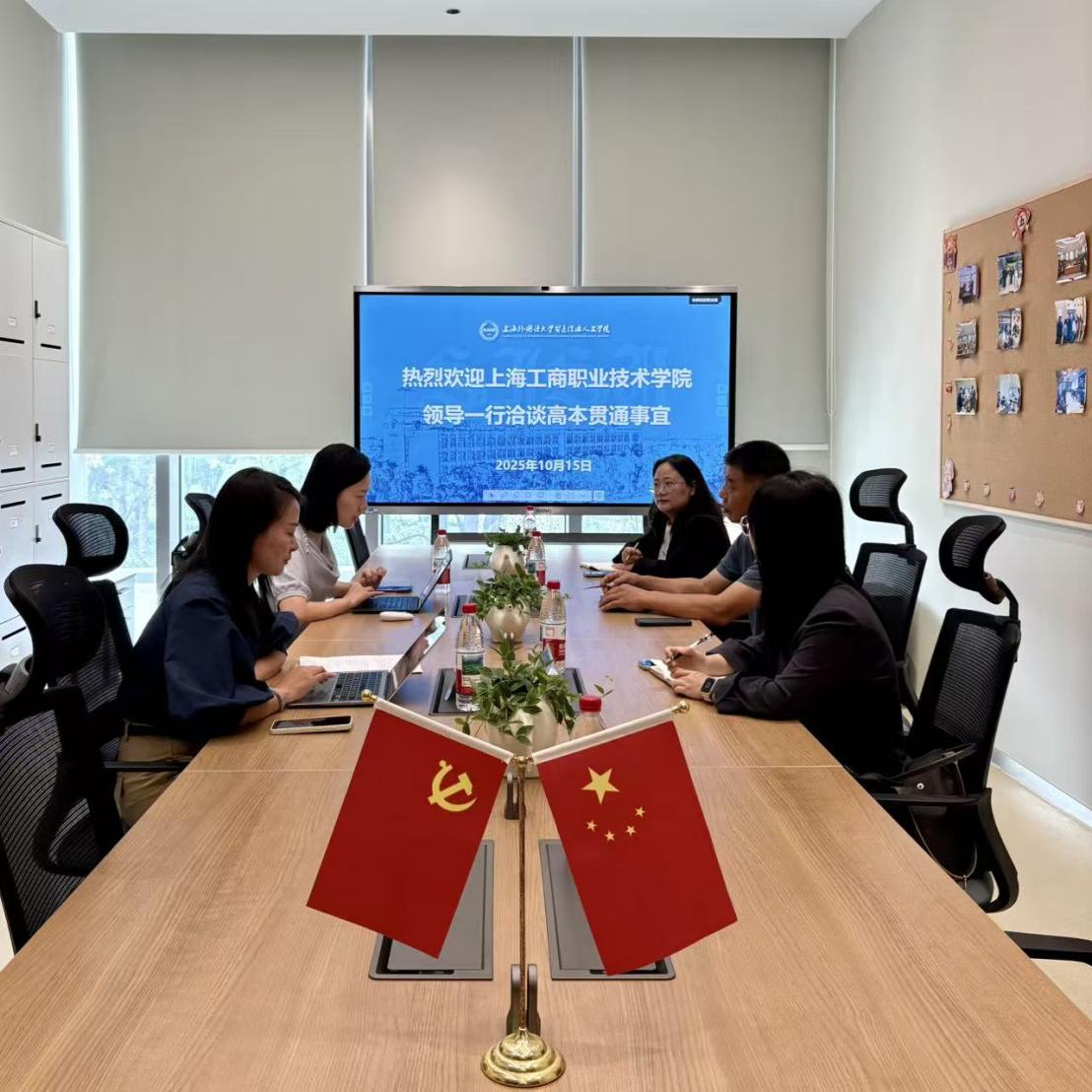 为积极响应上海市关于深化职业教育改革、构建现代职业教育体系的号召,推动应用型人才贯通培养,2025年10月15日,上海工商职业技术学院必赢电子游戏网站院长冯江华一行赴上海外国语大学贤达经济人文学院数字文旅学院进行考察交流,双方就会展策划与管理专业的高本贯通人才培养事宜进行了深入洽谈。