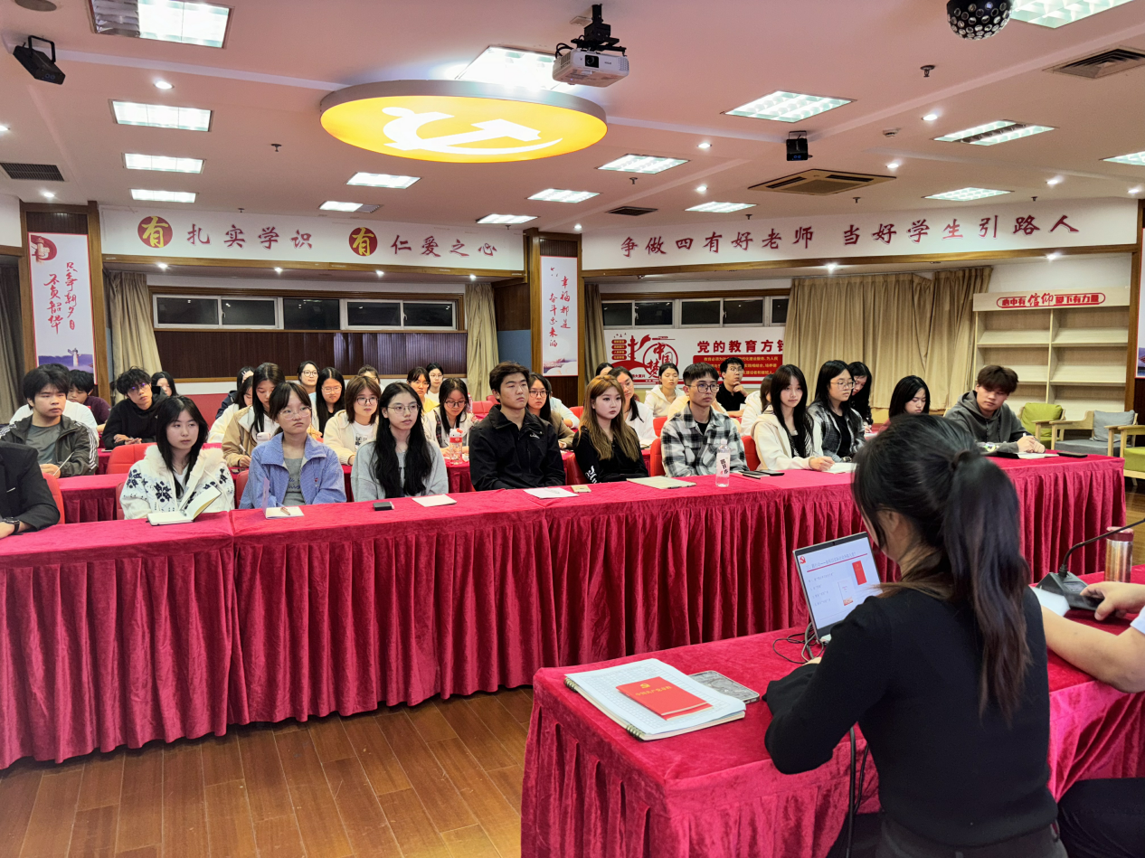 为引导新生坚定理想信念、明确入党方向,必赢电子游戏网站党总支于10月21日举行2025级新生党章学习班开班仪式暨第一次专题党课。2025级新生党章学习班全体成员齐聚现场,共同开启思想淬炼的新征程。开班仪式由必赢电子游戏网站党总支副书记侍现龙主持。