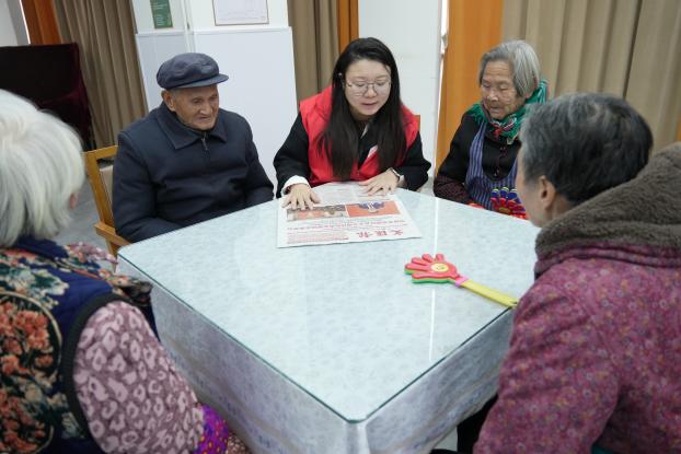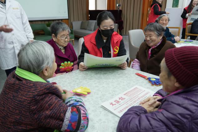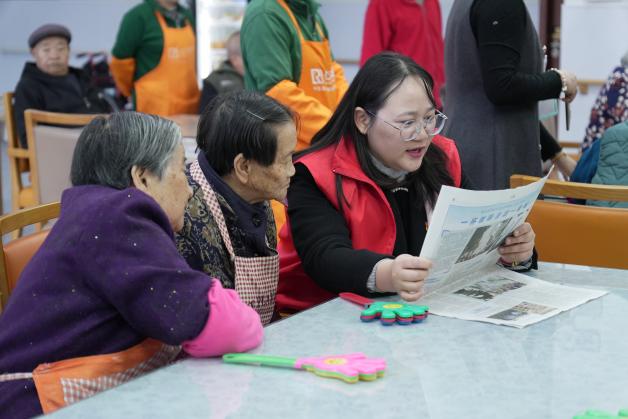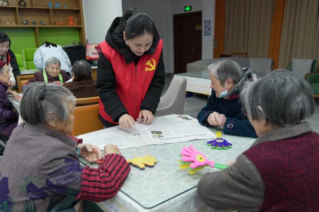 必赢电子游戏网站的教师党员和学生志愿者们与老人们结对而坐,手持刊载有党的二十届四中全会精神相关报道及解读文章的报纸刊物,用清晰、缓慢的语速为老人们进行朗读。针对部分重点内容,师生们还结合自身理解,用通俗易懂的语言进行解释和阐述,耐心解答老人们的疑问。朗朗读书声中,党的二十届四中全会精神如涓涓细流,浸润心田。老人们认真聆听,时而点头表示赞同,时而与身旁的师生交流感想,现场气氛温馨而融洽。